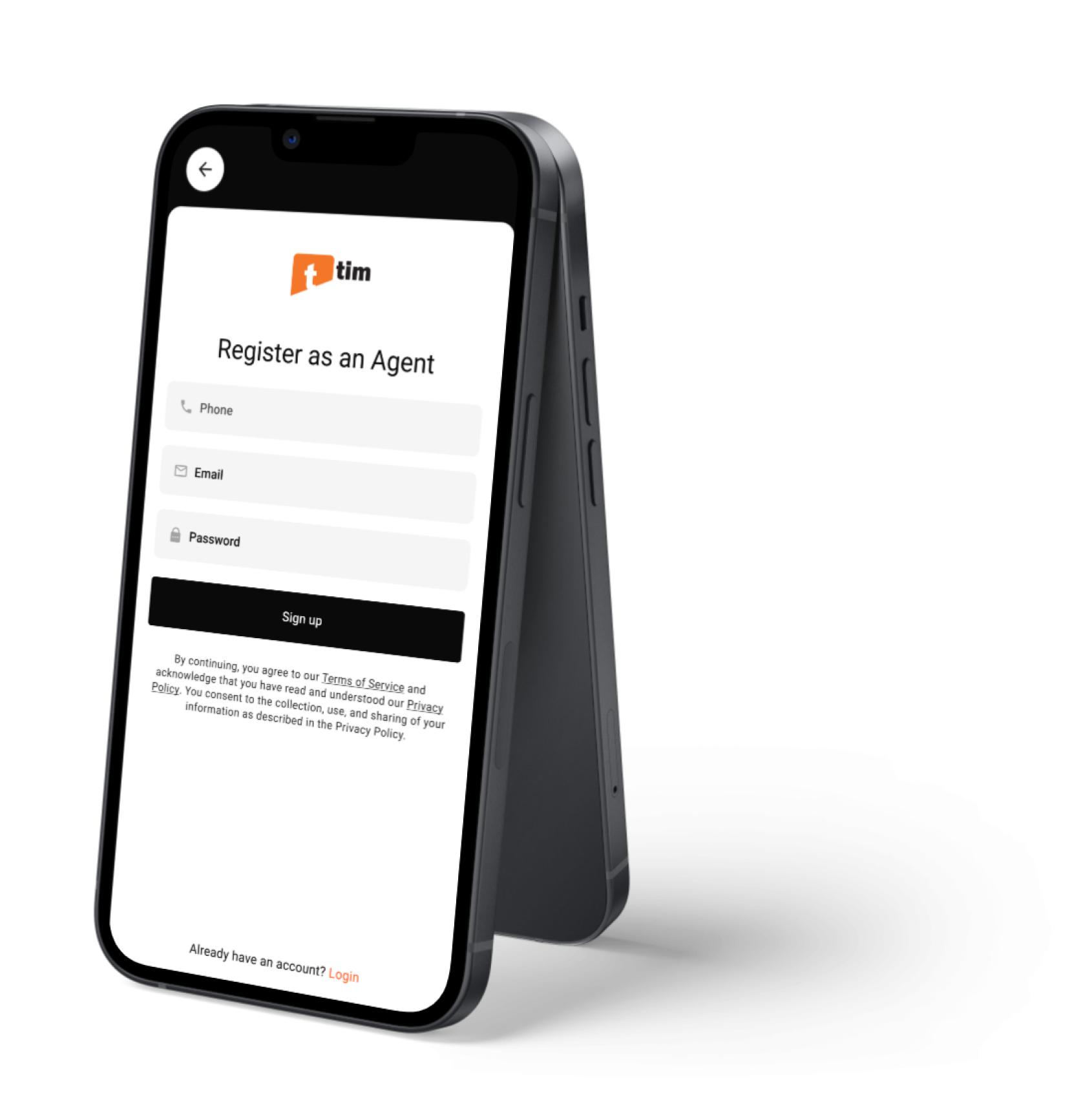 Install the TIM agent app to register, get verified, and go online when you are ready.